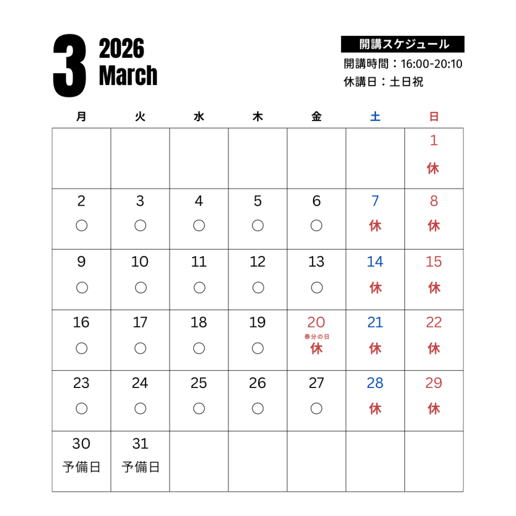 | 18:50-20:10 | ● | ● | ● | ● | ● | ー | ー |
